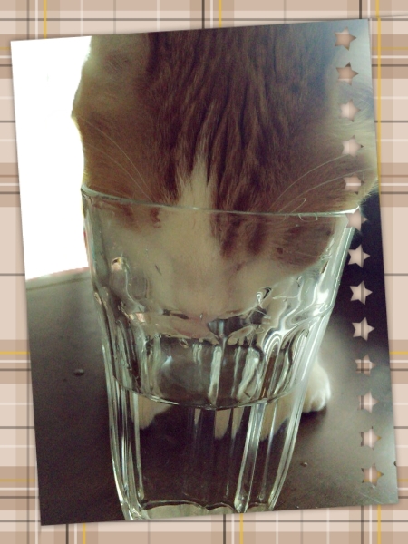 いつもべっちゃん用のお皿にお水を用意してあるのに最近まどかや梅ママの飲みかけのお水やお茶をすぐ飲もうとするべっちゃん。