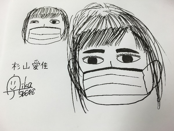 ↑↑↑上の写真は、昨日、teamSの杉山愛佳ちゃんが純奈の似顔絵を描いてくれたんですけど、それが面白すぎたので、写真に撮った画像です(笑)