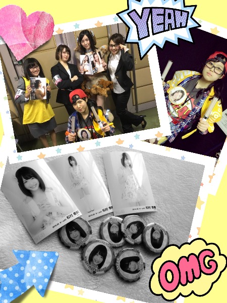 他のグッズは、取り寄せてもらったのですが、回収されてしまって、残ったのは松村かおりさんの缶バッヂ6個と生写真3枚…。