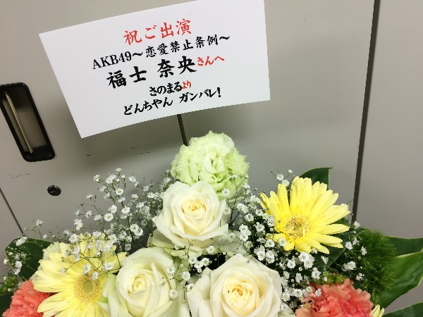 昨日初日を迎えた、AKB49〜恋愛禁止条例〜のお祝いに、さのまるからお花が届いてました(^^)