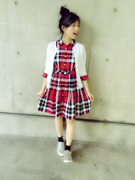 今日の私服はワンピースにお団子〜〜(o^^o)