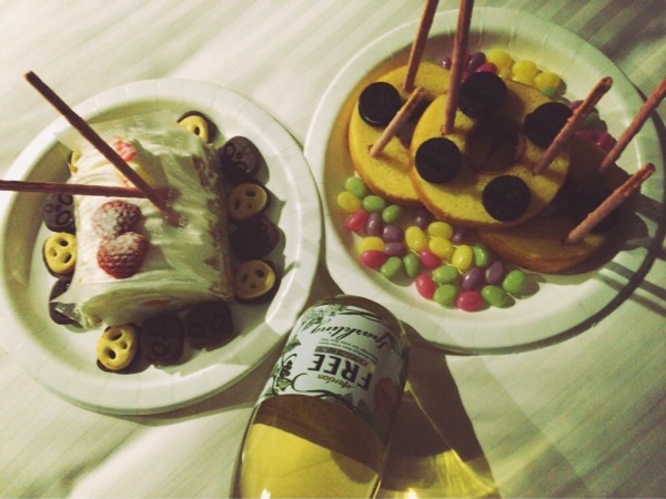 昨日は荒井優希ちゃんの誕生日を祝いました^ ^るかが、バウムクーヘンとお菓子を使ってなんかすごいケーキが出来上がりました!笑