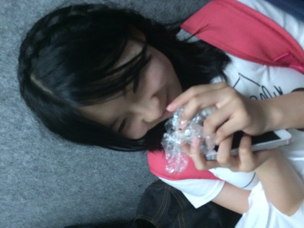 昨日の公演終わり、スギちゃんことチームSの杉山愛佳ちゃんがおにぎりを大切そうにもってましたー!