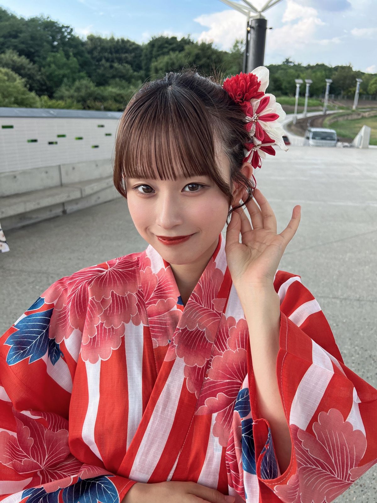 愛・地球博20祭 サマモリ盆踊りありがとうございました🌻🍉たくさんの方と一緒に盆踊り踊れて初めての経験で楽しかったですっ!!浴衣も着れました😽赤っぽいの着たよお髪の毛まとめてるのも珍しいです💃素敵な20周年お祝いできて楽しめて最高でした!